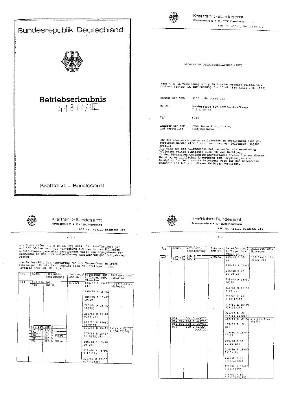 Felgengutachten / abe für Alufelgen Rondell Design 120 / Raddtyp 6224-A,B / Größe 7x15 ET37 (ET 0, Mittenloch 0 mm) mit KBA 41311 (Zertifikatsnummer 41311). Hier kostenlos als PDF herunterladen. Der Download-Link ist 24 Stunden gültig und kann bis zu zwei Mal verwendet werden.