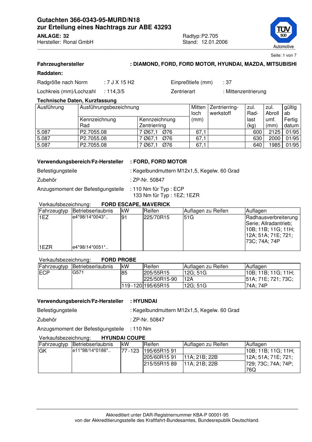 Fahrzeughersteller: DIAMOND, FORD, HYUNDAI, MAZDA, MITSUBISHI