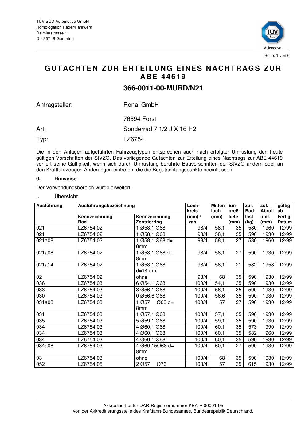 Dieses Gutachten (abe) bezieht sich auf die Alufelge ATS LZ6754 in der Ausführung 2Jx16 ET 0, Mittenloch 0 mm (KBA 44619). Im PDF findest du typischerweise zulässige Reifengrößen, Auflagen/Anbauhinweise und – je nach Dokument – Hinweise zur Eintragung.