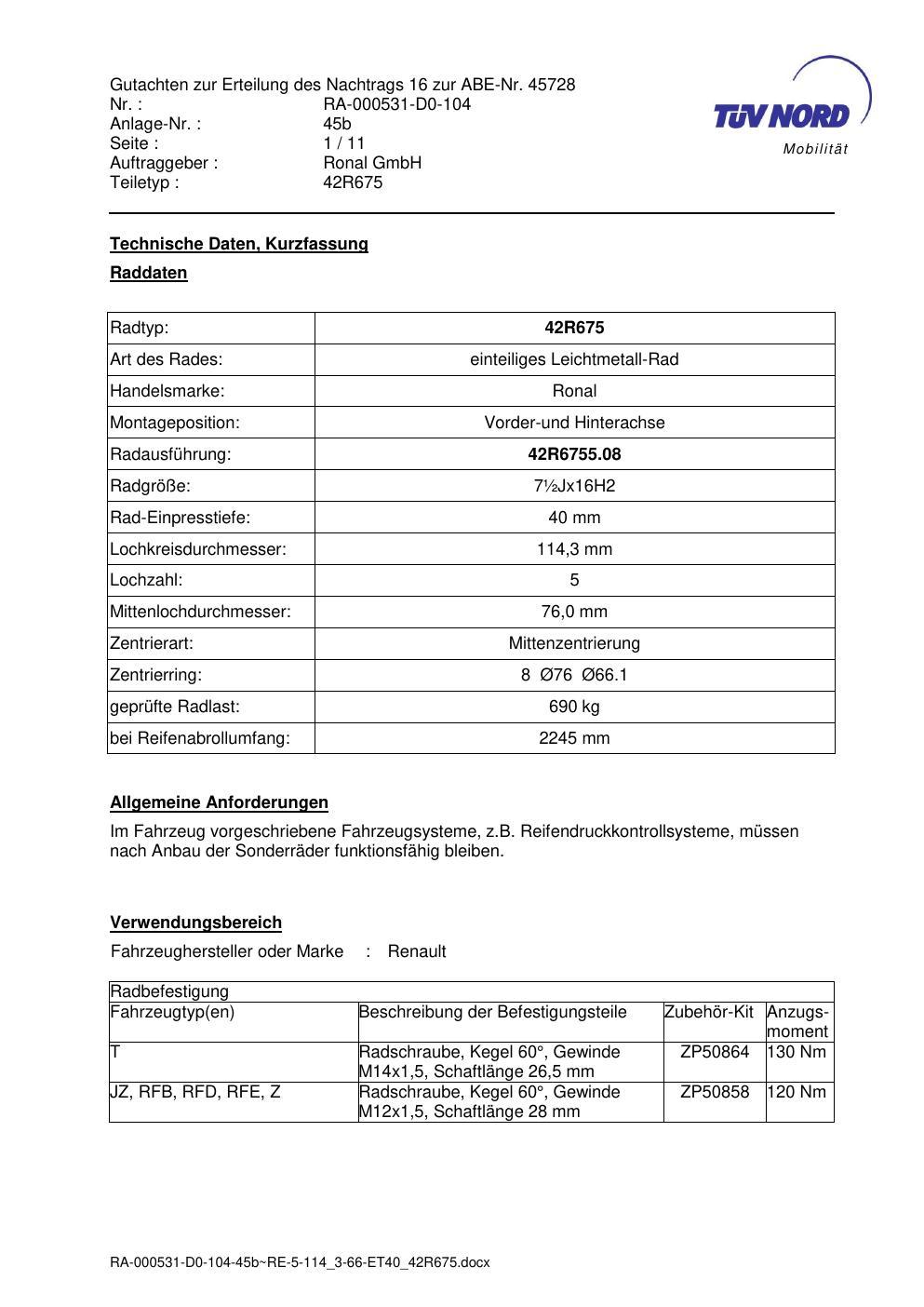 Dieses abe gehört zur Felge Ronal 42R675 in ET0 mit KBA 45728. Die Seite ist dafür gedacht, dass du schnell prüfen kannst, ob KBA, Design und Größe zu deiner Felge passen und danach direkt das richtige PDF lädst.