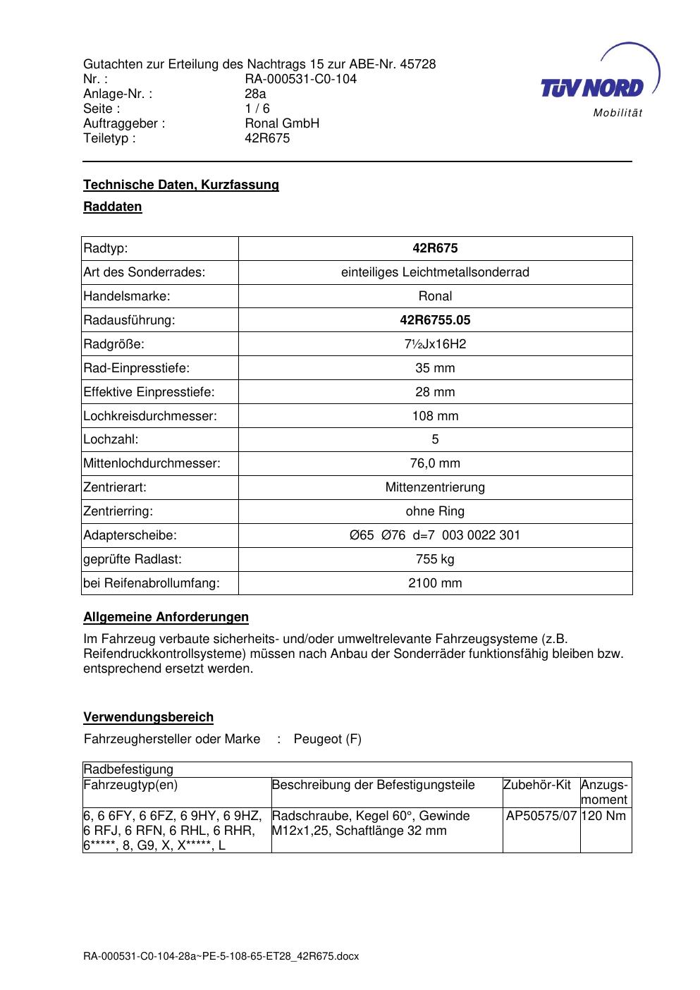 • Stimmt die KBA-Nummer auf der Felge mit diesem Dokument überein?