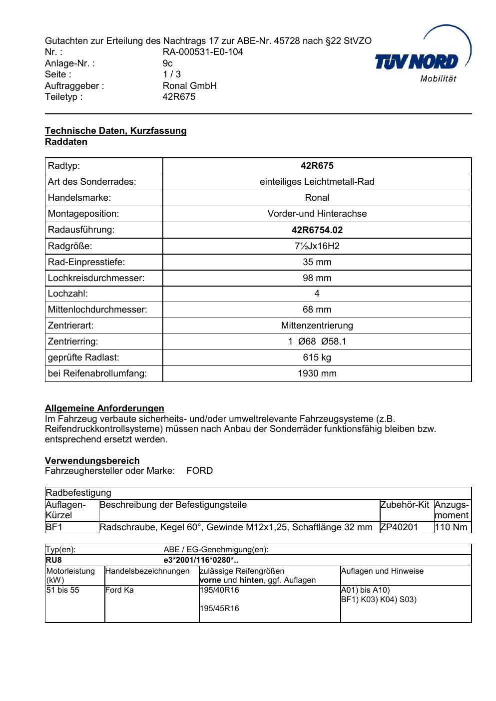 • Stimmt die KBA-Nummer auf der Felge mit diesem Dokument überein?