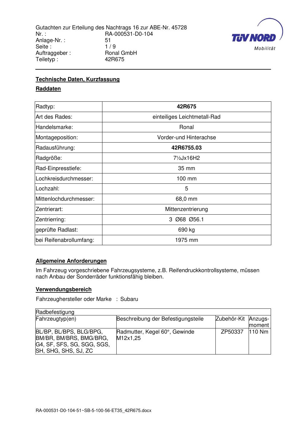 Stimmt die KBA-Nummer auf der Felge mit diesem Dokument überein?