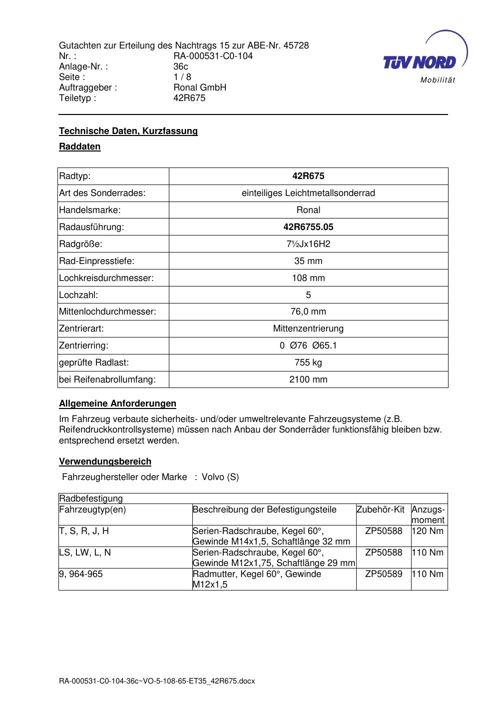 • Stimmt die KBA-Nummer auf der Felge mit diesem Dokument überein?