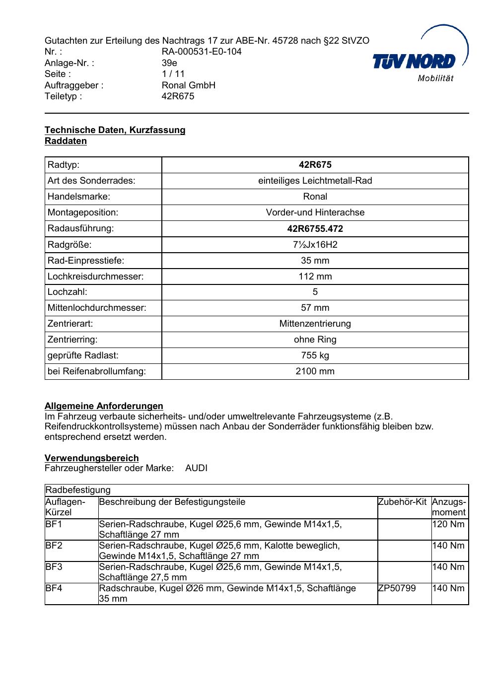 • Stimmt die KBA-Nummer auf der Felge mit diesem Dokument überein?