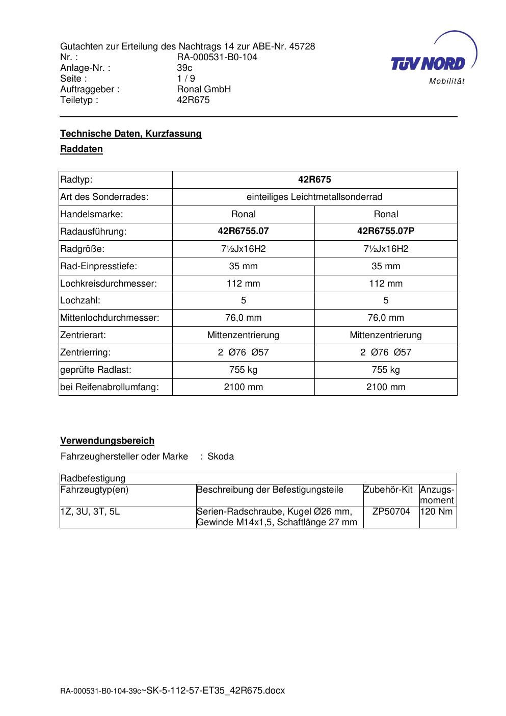 • Stimmt die KBA-Nummer auf der Felge mit diesem Dokument überein?