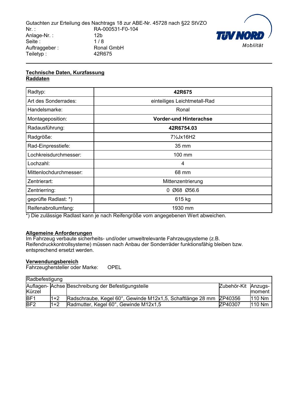 • Stimmt die KBA-Nummer auf der Felge mit diesem Dokument überein?