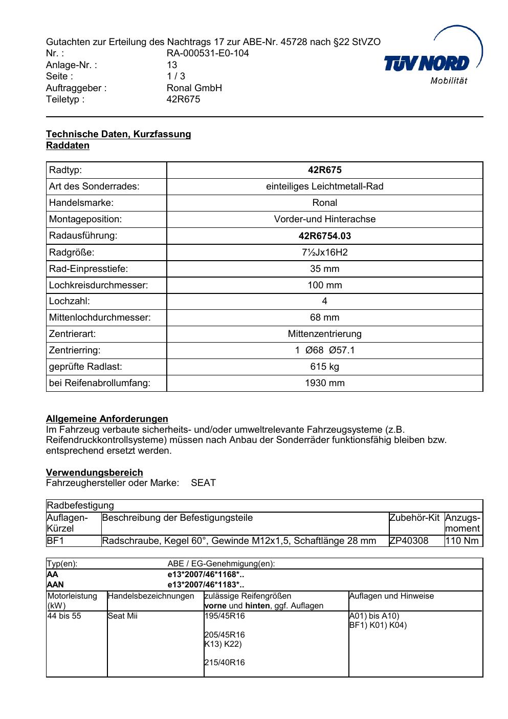 Dieses abe gehört zur Felge Ronal 42R675 in ET0 mit KBA 45728. Die Seite ist dafür gedacht, dass du schnell prüfen kannst, ob KBA, Design und Größe zu deiner Felge passen und danach direkt das richtige PDF lädst.