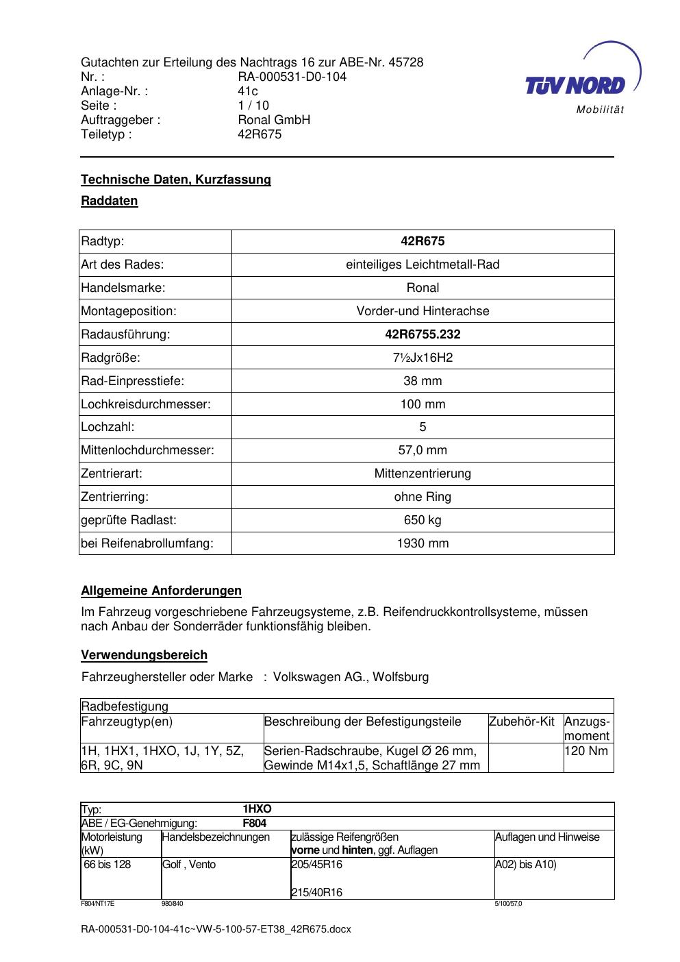 • Stimmt die KBA-Nummer auf der Felge mit diesem Dokument überein?