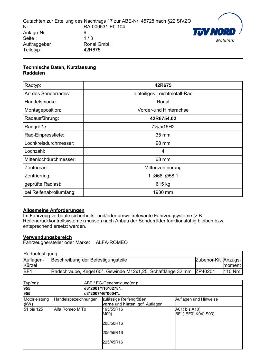 Stimmt die KBA-Nummer auf der Felge mit diesem Dokument überein?