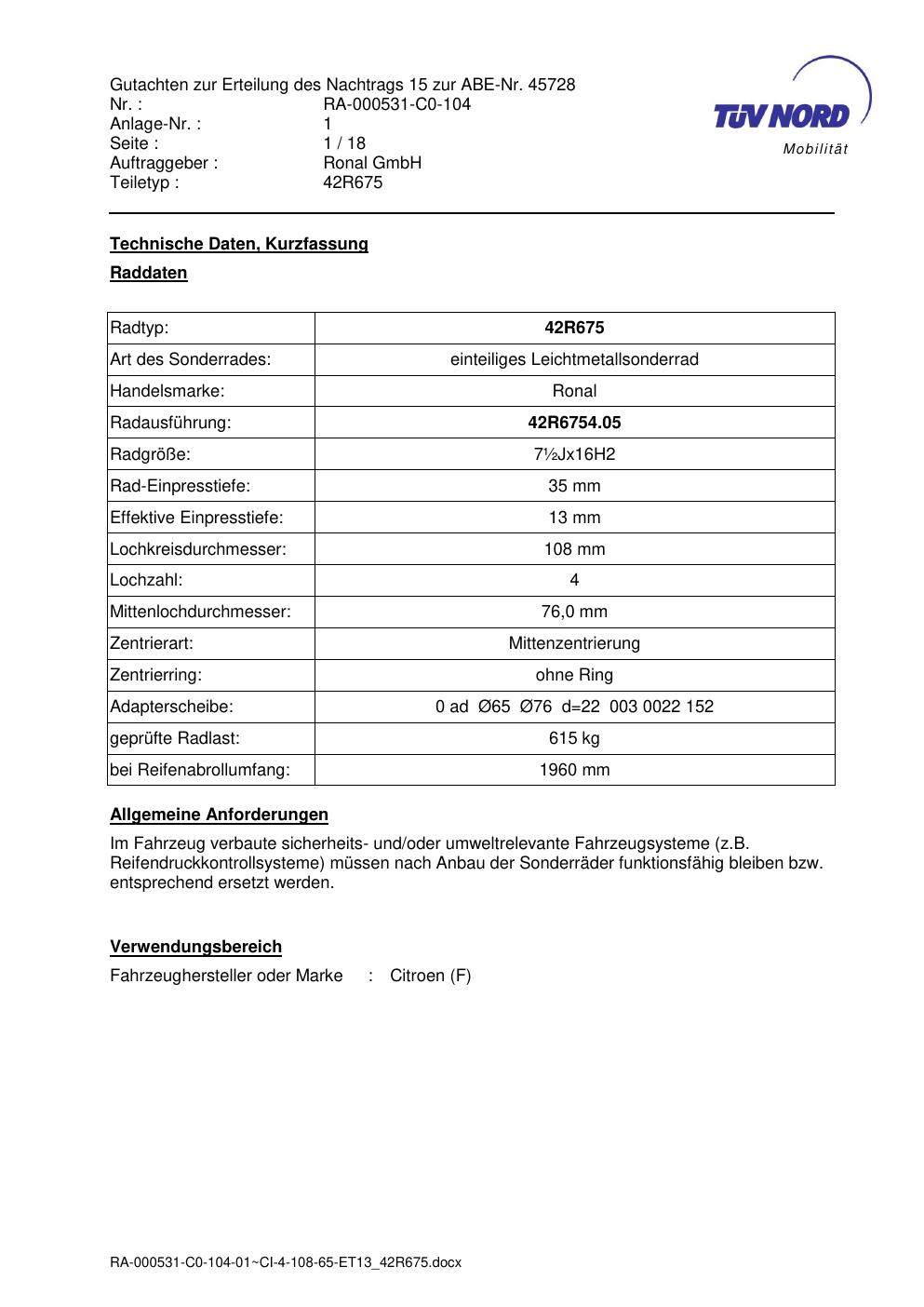 • Stimmt die KBA-Nummer auf der Felge mit diesem Dokument überein?