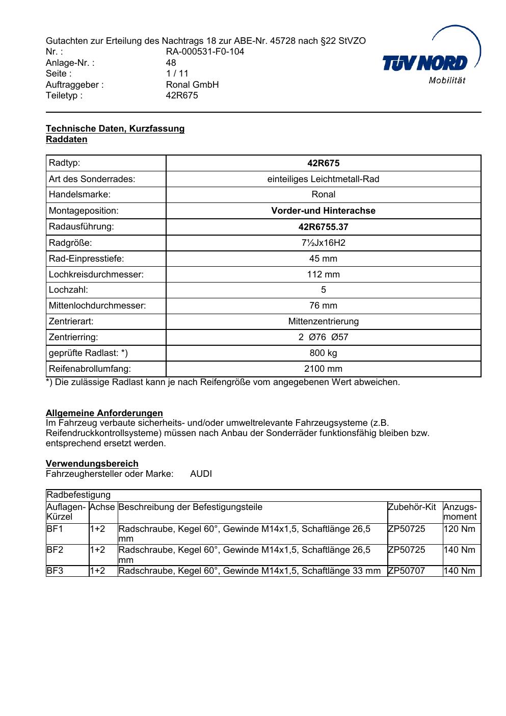Dieses abe gehört zur Felge Ronal 42R675 in 8Jx19 ET0 mit KBA 45728. Die Seite ist dafür gedacht, dass du schnell prüfen kannst, ob KBA, Design und Größe zu deiner Felge passen und danach direkt das richtige PDF lädst.