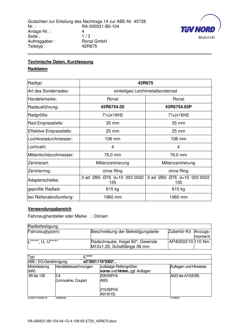 • Stimmt die KBA-Nummer auf der Felge mit diesem Dokument überein?