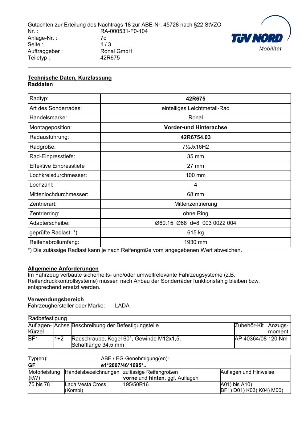 • Stimmt die KBA-Nummer auf der Felge mit diesem Dokument überein?