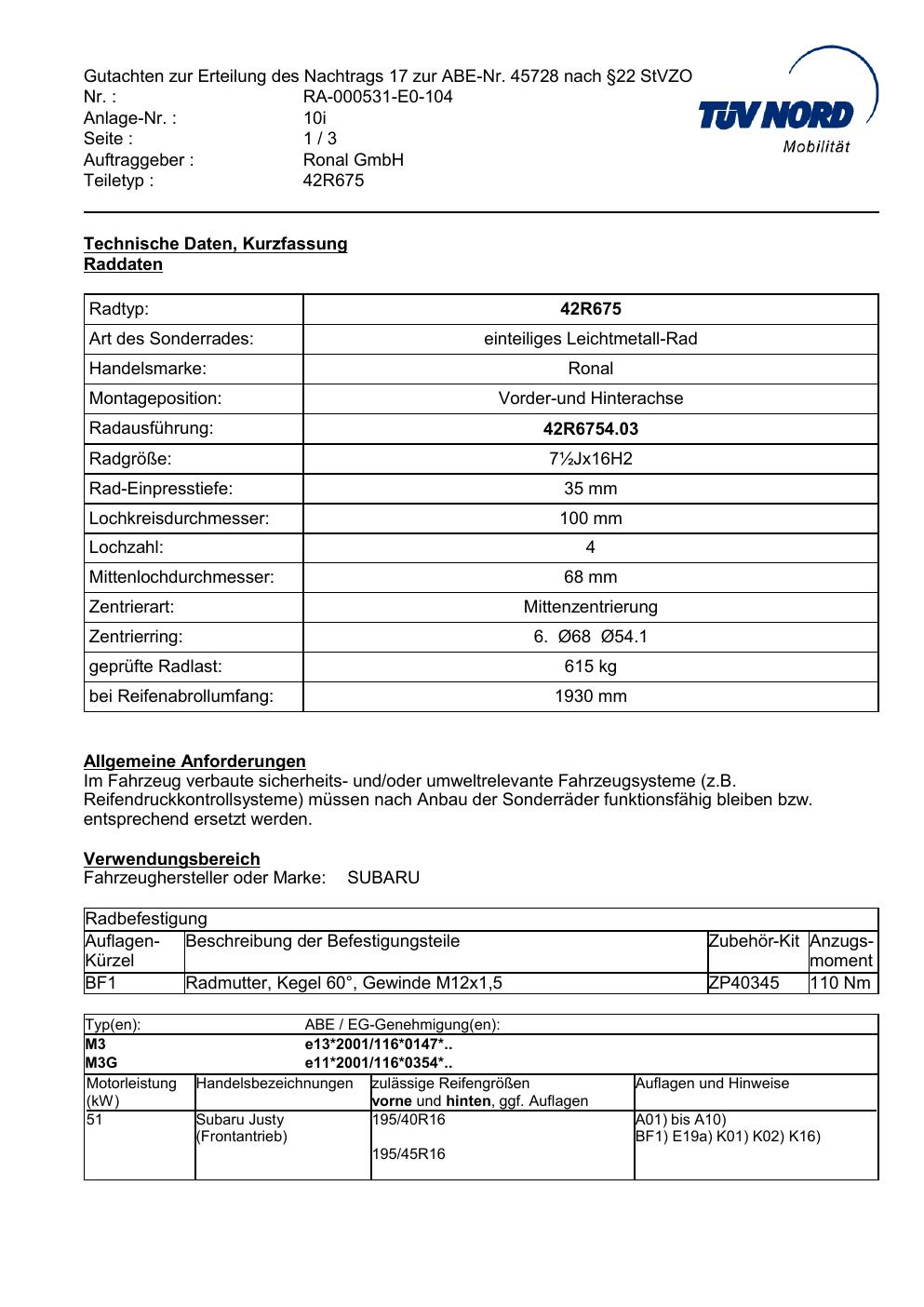 • Stimmt die KBA-Nummer auf der Felge mit diesem Dokument überein?