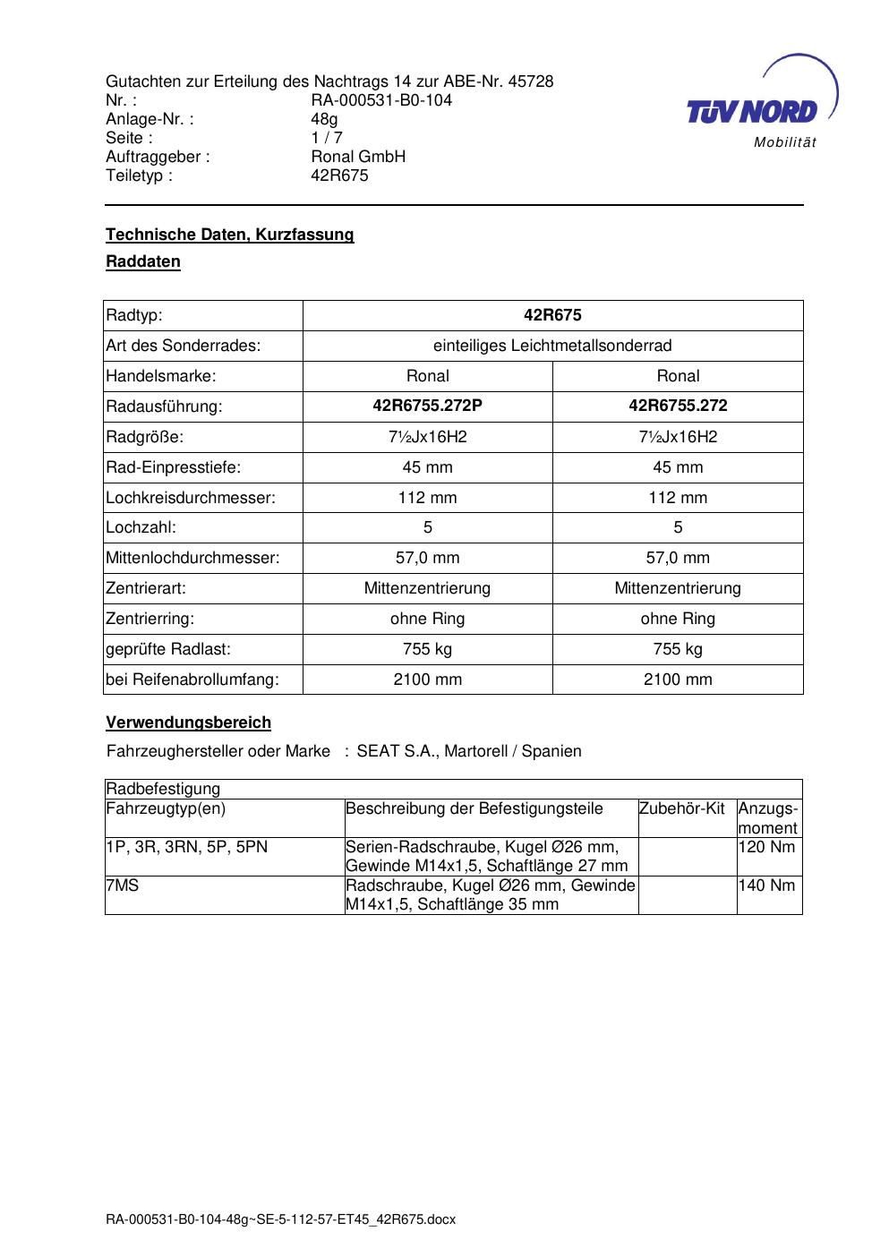 Dieses abe gehört zur Felge Ronal 42R675 in ET0 mit KBA 45728. Die Seite ist dafür gedacht, dass du schnell prüfen kannst, ob KBA, Design und Größe zu deiner Felge passen und danach direkt das richtige PDF lädst.
