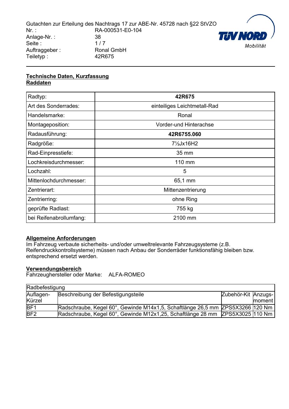Dieses abe gehört zur Felge Ronal 42R675 in ET0 mit KBA 45728. Die Seite ist dafür gedacht, dass du schnell prüfen kannst, ob KBA, Design und Größe zu deiner Felge passen und danach direkt das richtige PDF lädst.