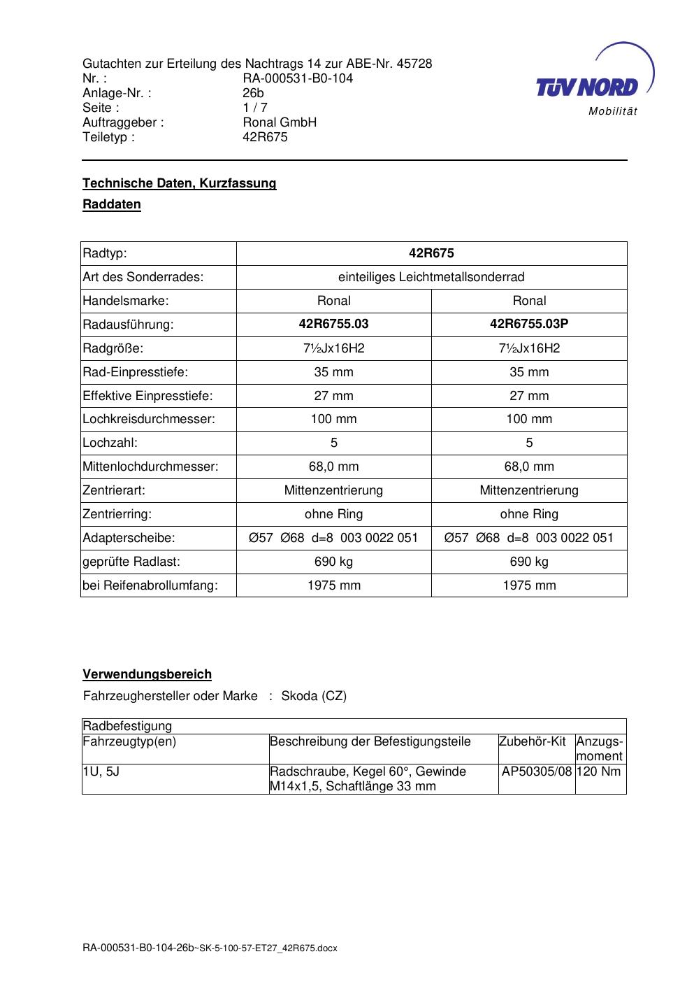 • Stimmt die KBA-Nummer auf der Felge mit diesem Dokument überein?