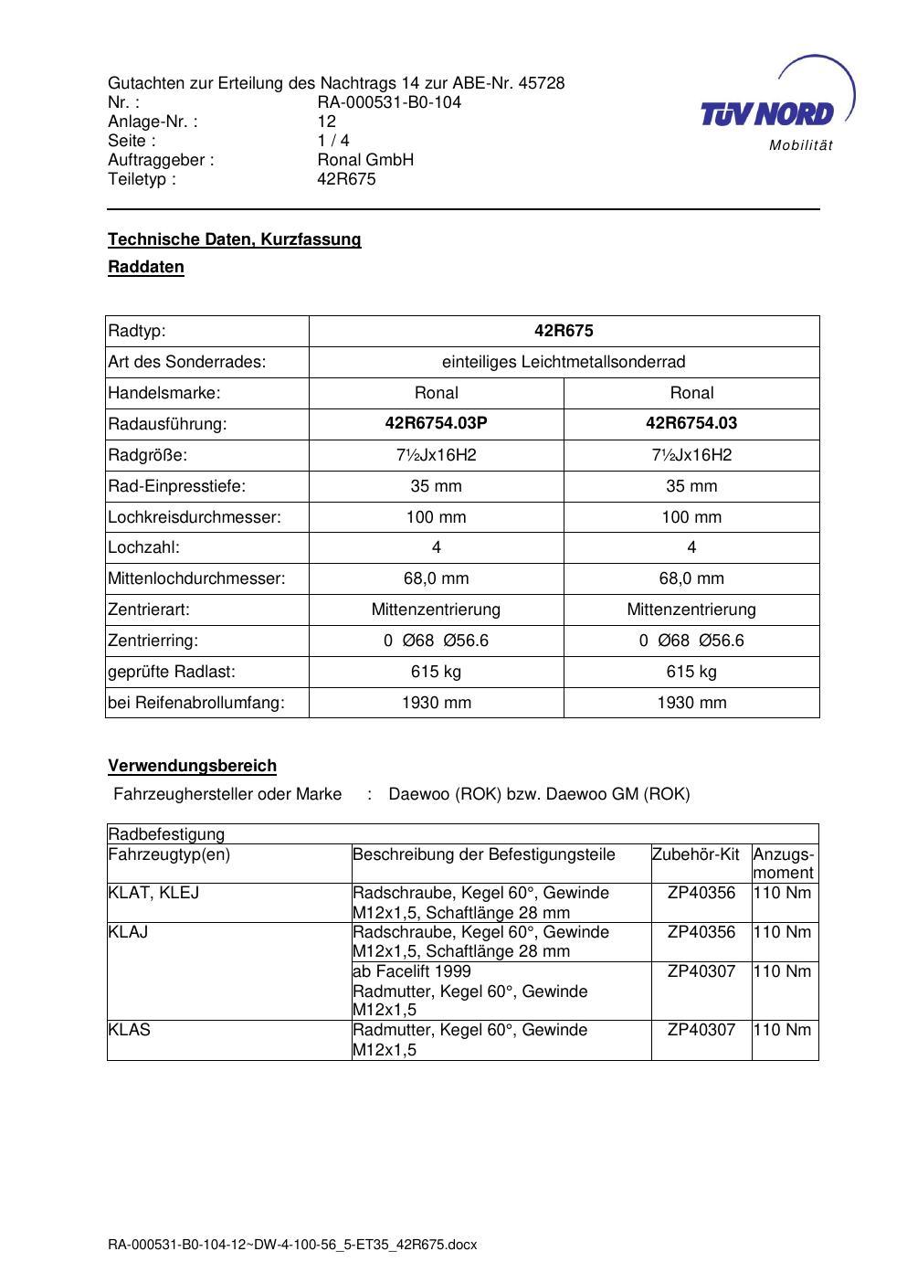 • Stimmt die KBA-Nummer auf der Felge mit diesem Dokument überein?