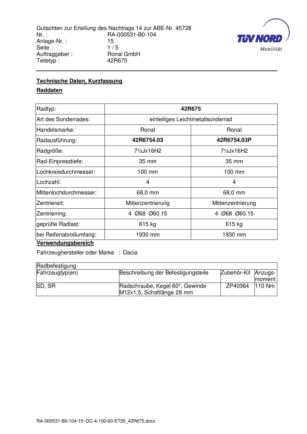 • Stimmt die KBA-Nummer auf der Felge mit diesem Dokument überein?