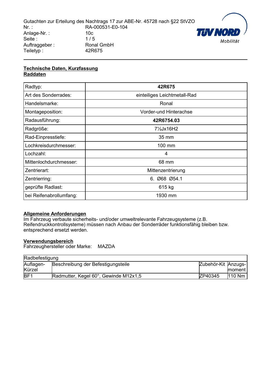 Dieses abe gehört zur Felge Ronal 42R675 in ET0 mit KBA 45728. Die Seite ist dafür gedacht, dass du schnell prüfen kannst, ob KBA, Design und Größe zu deiner Felge passen und danach direkt das richtige PDF lädst.