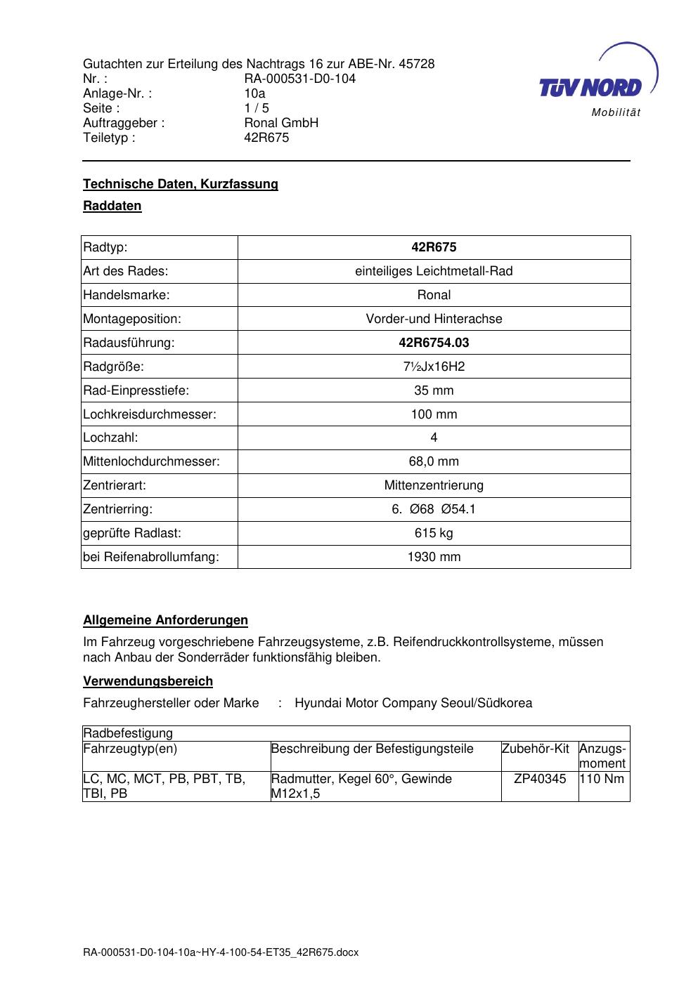 • Stimmt die KBA-Nummer auf der Felge mit diesem Dokument überein?