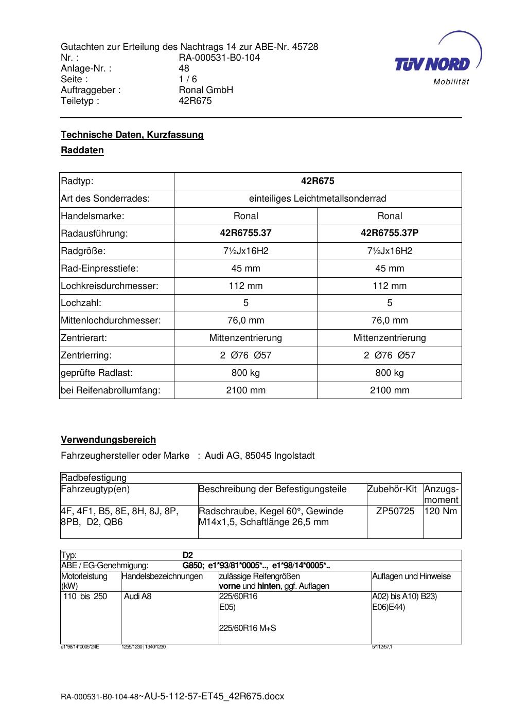 Dieses abe gehört zur Felge Ronal 42R675 in ET0 mit KBA 45728. Die Seite ist dafür gedacht, dass du schnell prüfen kannst, ob KBA, Design und Größe zu deiner Felge passen und danach direkt das richtige PDF lädst.