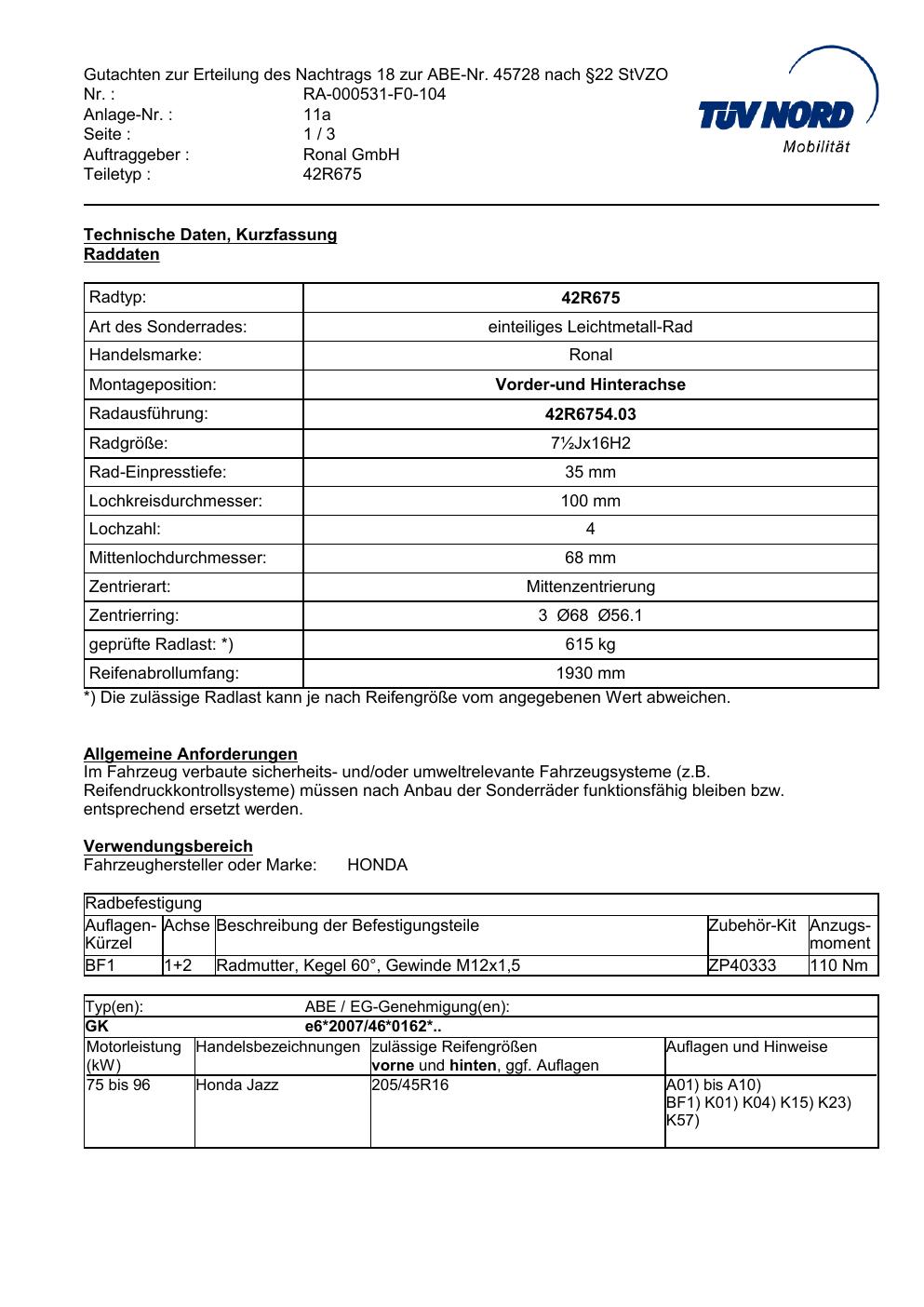 • Stimmt die KBA-Nummer auf der Felge mit diesem Dokument überein?
