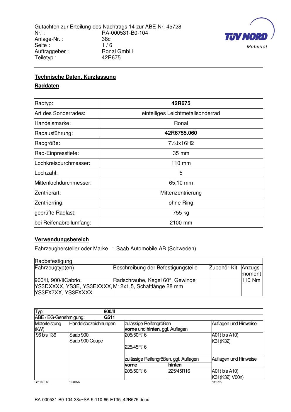 • Stimmt die KBA-Nummer auf der Felge mit diesem Dokument überein?