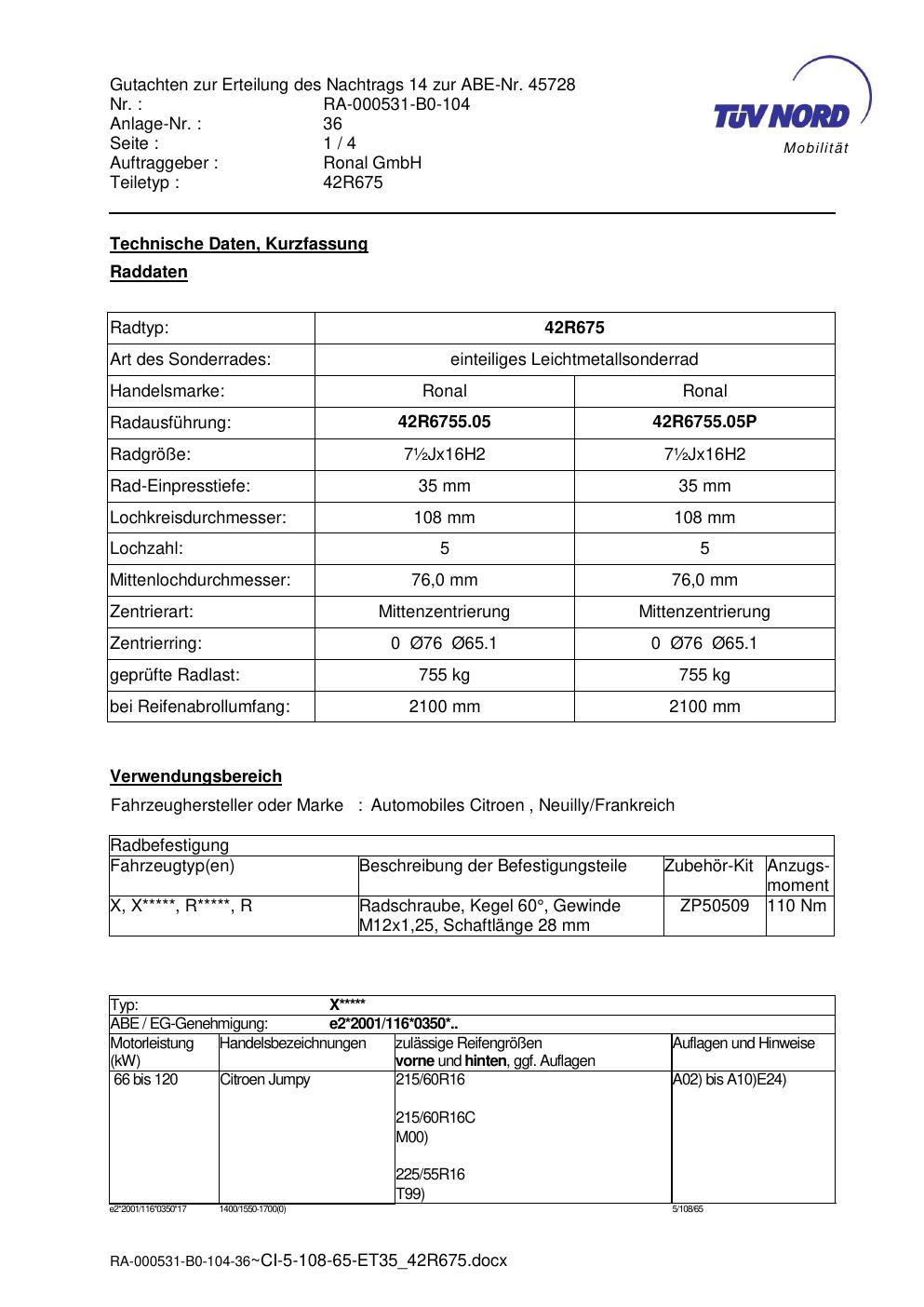 • Stimmt die KBA-Nummer auf der Felge mit diesem Dokument überein?