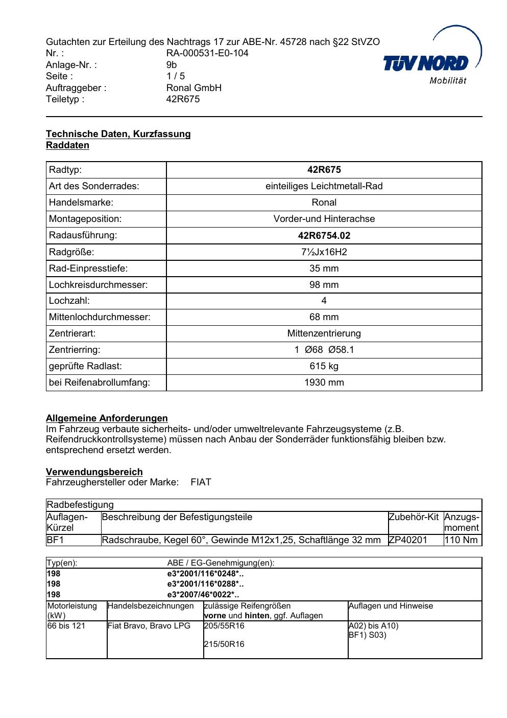 Dieses abe gehört zur Felge Ronal 42R675 in ET0 mit KBA 45728. Die Seite ist dafür gedacht, dass du schnell prüfen kannst, ob KBA, Design und Größe zu deiner Felge passen und danach direkt das richtige PDF lädst.