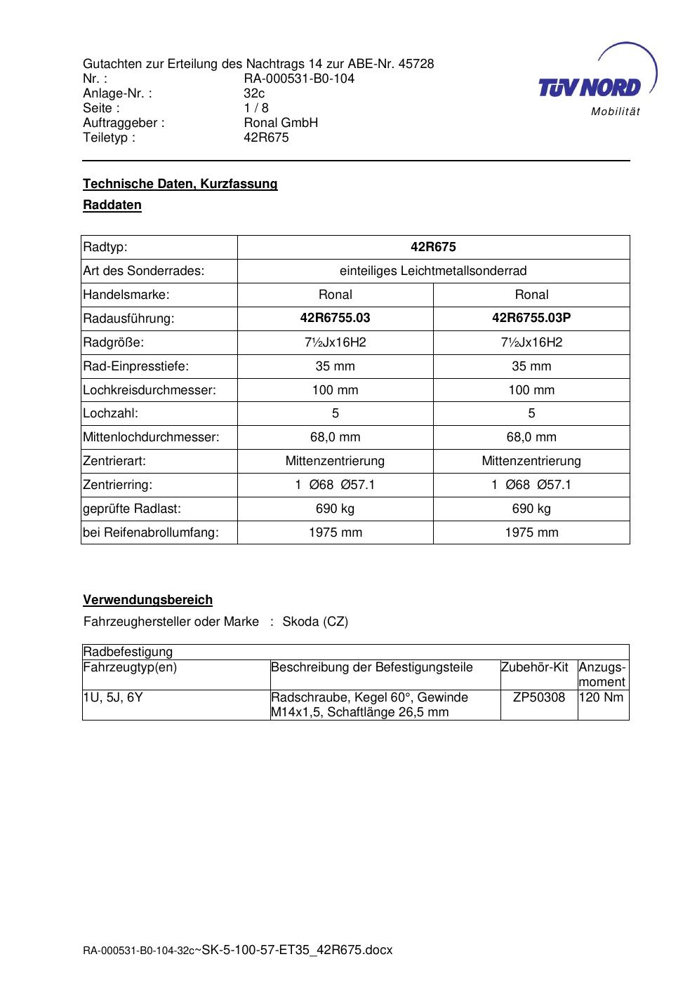 Dieses abe gehört zur Felge Ronal 42R675 in ET0 mit KBA 45728. Die Seite ist dafür gedacht, dass du schnell prüfen kannst, ob KBA, Design und Größe zu deiner Felge passen und danach direkt das richtige PDF lädst.