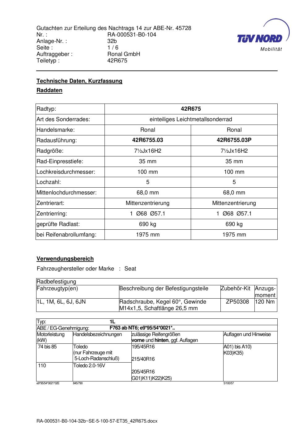 Dieses abe gehört zur Felge Ronal 42R675 in ET0 mit KBA 45728. Die Seite ist dafür gedacht, dass du schnell prüfen kannst, ob KBA, Design und Größe zu deiner Felge passen und danach direkt das richtige PDF lädst.