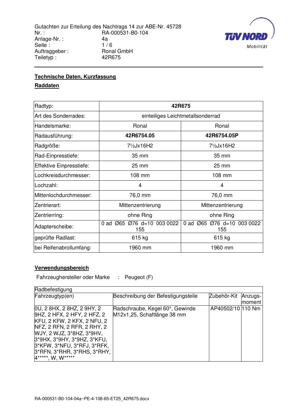 • Stimmt die KBA-Nummer auf der Felge mit diesem Dokument überein?