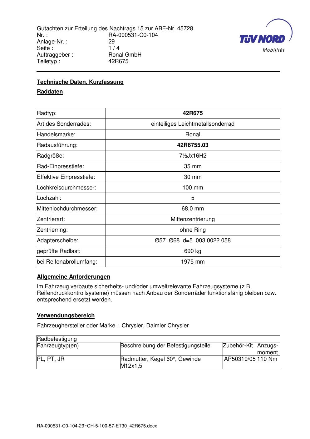 • Stimmt die KBA-Nummer auf der Felge mit diesem Dokument überein?