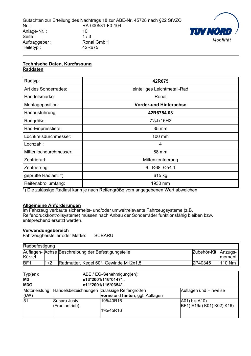 • Stimmt die KBA-Nummer auf der Felge mit diesem Dokument überein?