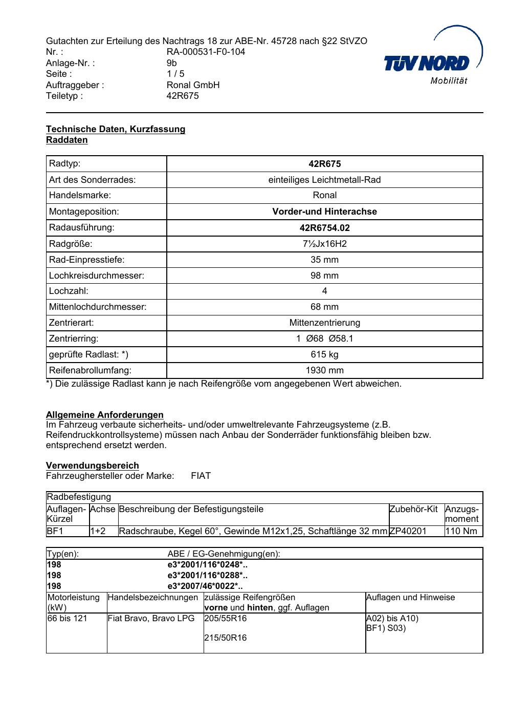 • Stimmt die KBA-Nummer auf der Felge mit diesem Dokument überein?