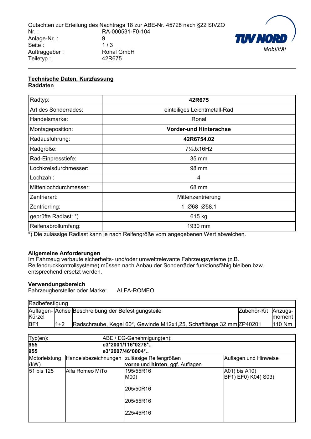 • Stimmt die KBA-Nummer auf der Felge mit diesem Dokument überein?