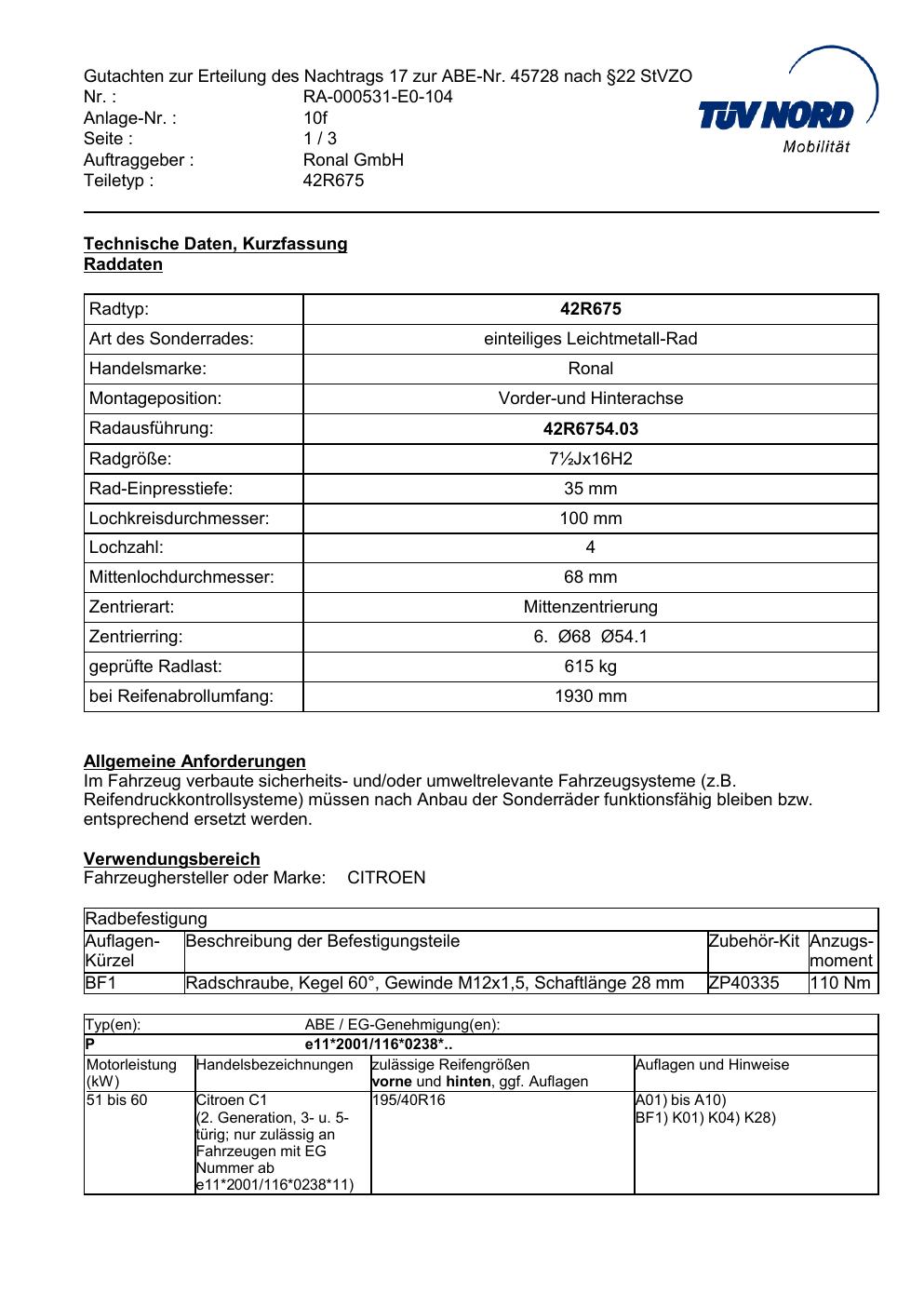 Dieses abe gehört zur Felge Ronal 42R675 in ET0 mit KBA 45728. Die Seite ist dafür gedacht, dass du schnell prüfen kannst, ob KBA, Design und Größe zu deiner Felge passen und danach direkt das richtige PDF lädst.