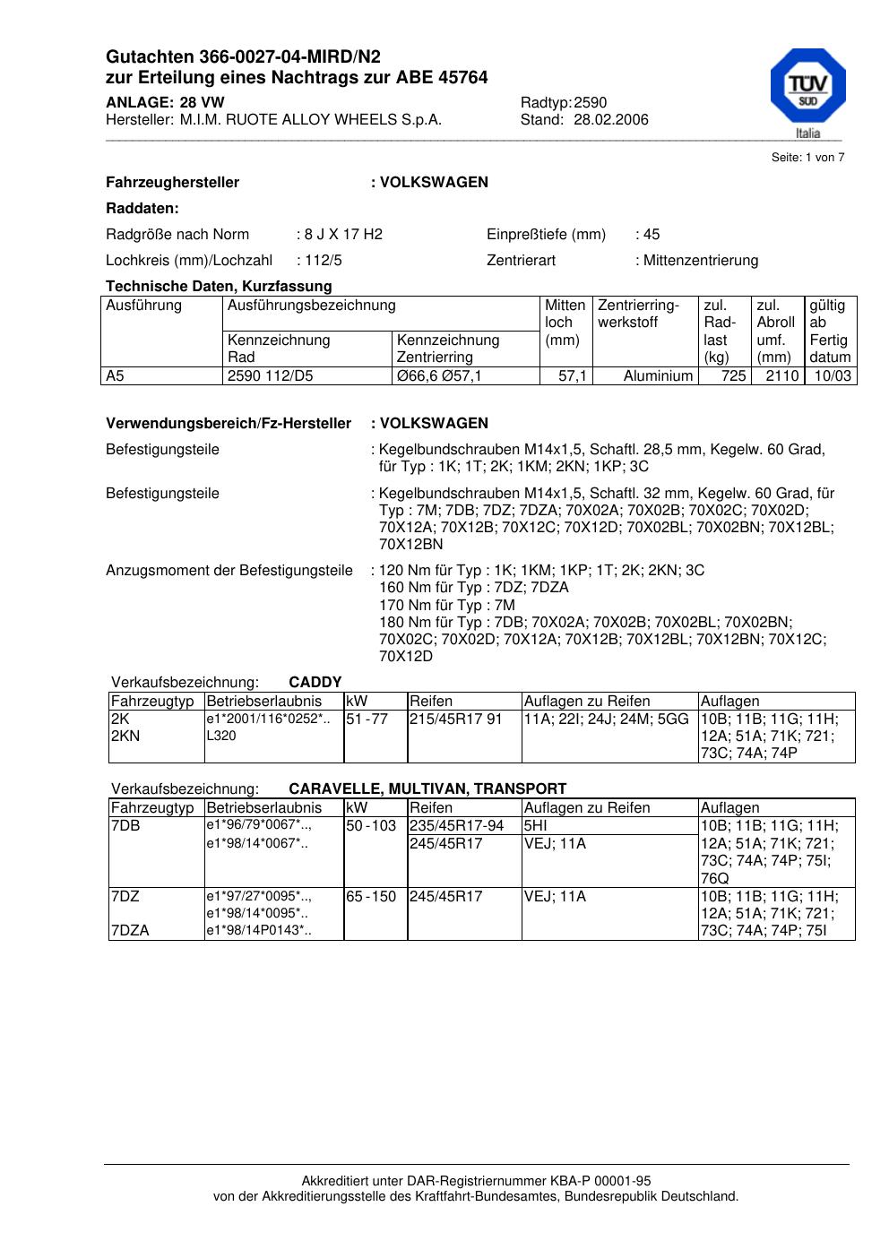 Felgengutachten / abe für Alufelgen ATS 2590 (8Jx17 ET 0, Mittenloch 0 mm) mit KBA 45764 (Zertifikatsnummer 45764). Hier kostenlos als PDF herunterladen. Der Download-Link ist 24 Stunden gültig und kann bis zu zwei Mal verwendet werden.