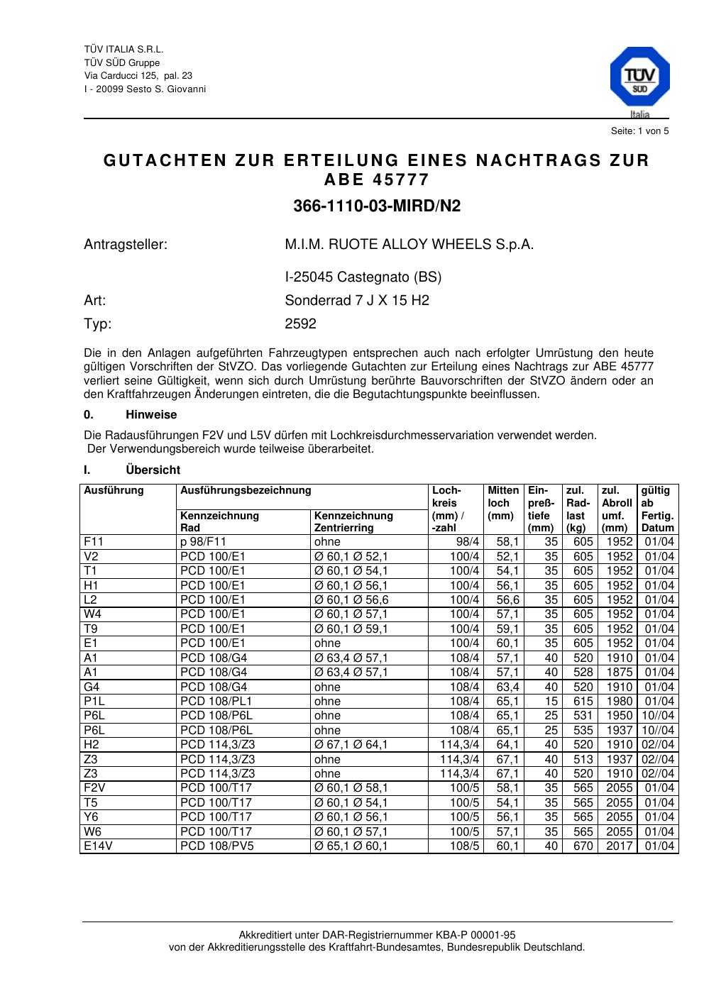 Felgengutachten / abe für Alufelgen ATS 2592 (7Jx15 ET 0, Mittenloch 0 mm) mit KBA 45777 (Zertifikatsnummer 45777). Hier kostenlos als PDF herunterladen. Der Download-Link ist 24 Stunden gültig und kann bis zu zwei Mal verwendet werden.