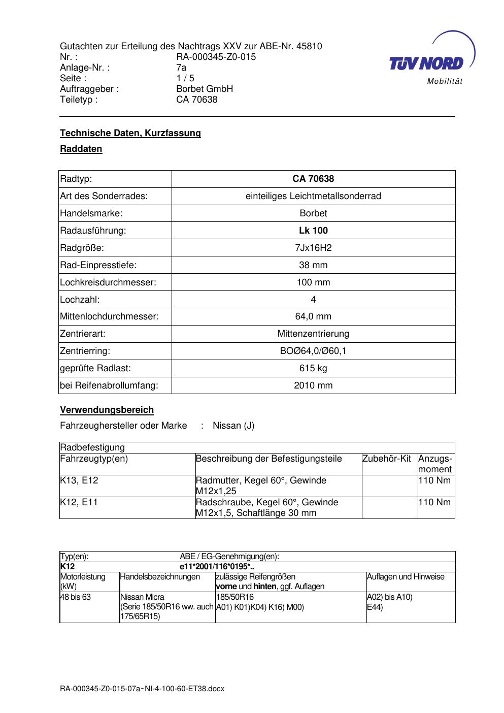 • Stimmt die KBA-Nummer auf der Felge mit diesem Dokument überein?