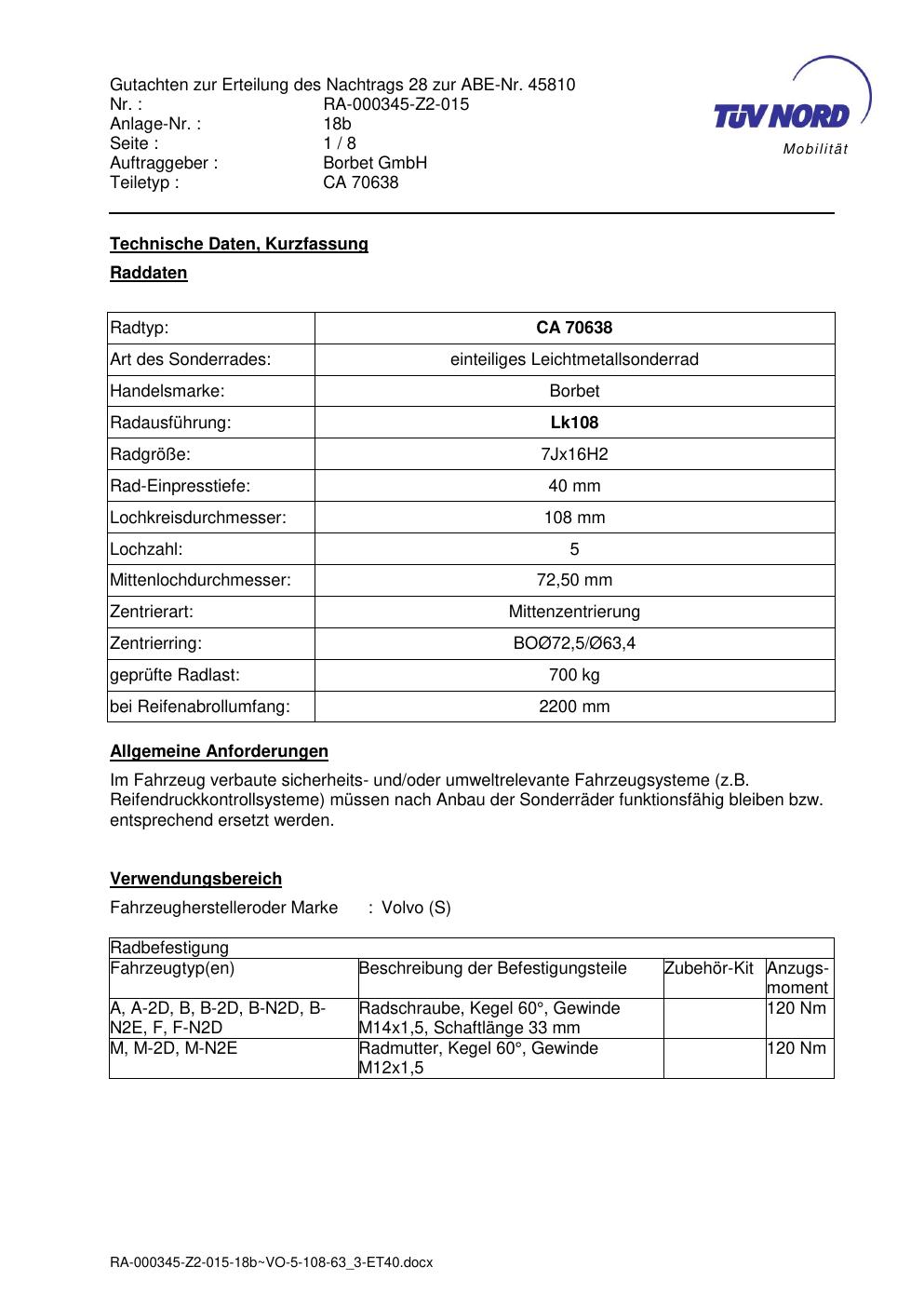 • Stimmt die KBA-Nummer auf der Felge mit diesem Dokument überein?