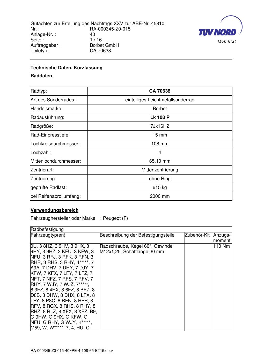 • Stimmt die KBA-Nummer auf der Felge mit diesem Dokument überein?
