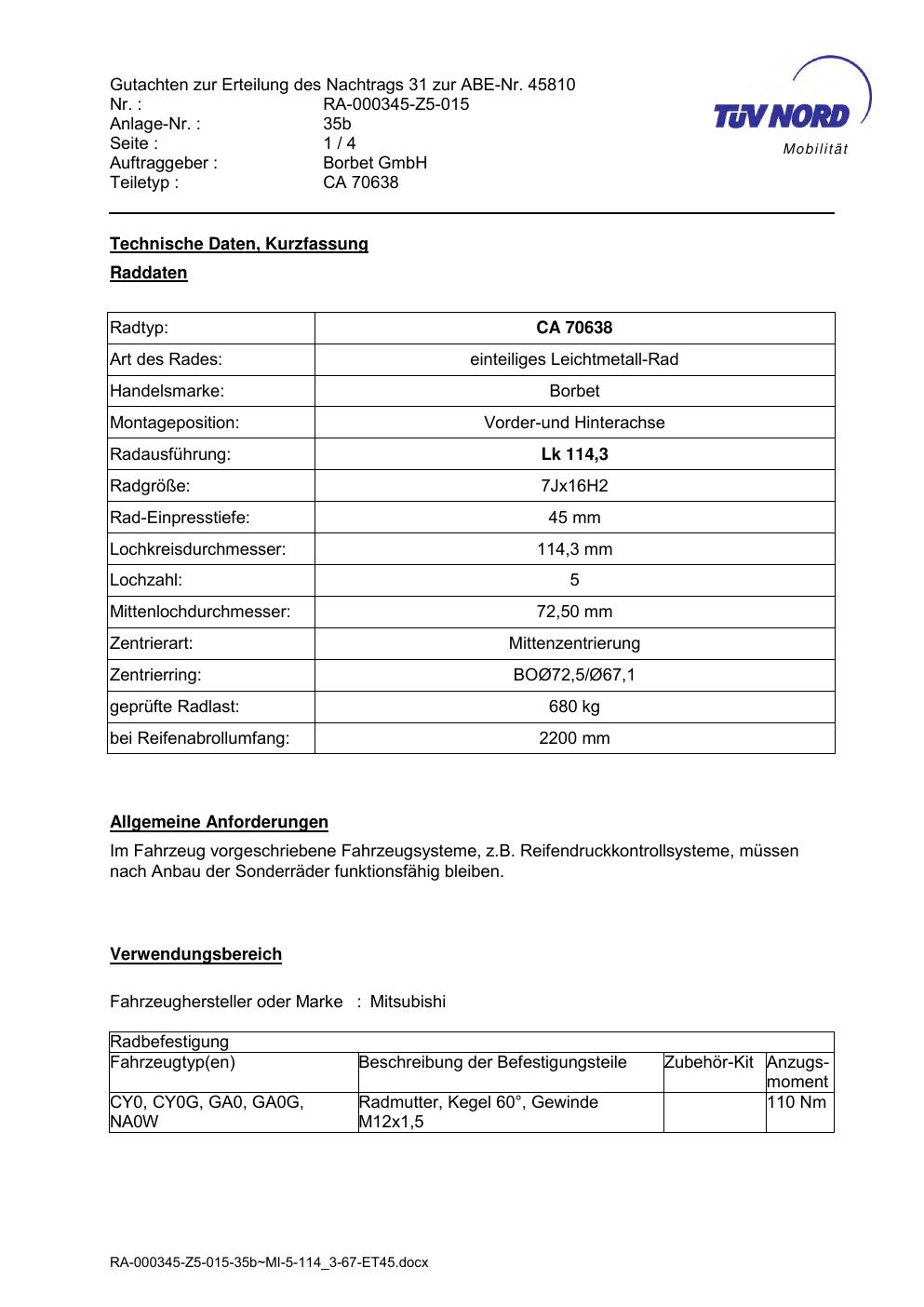 • Stimmt die KBA-Nummer auf der Felge mit diesem Dokument überein?