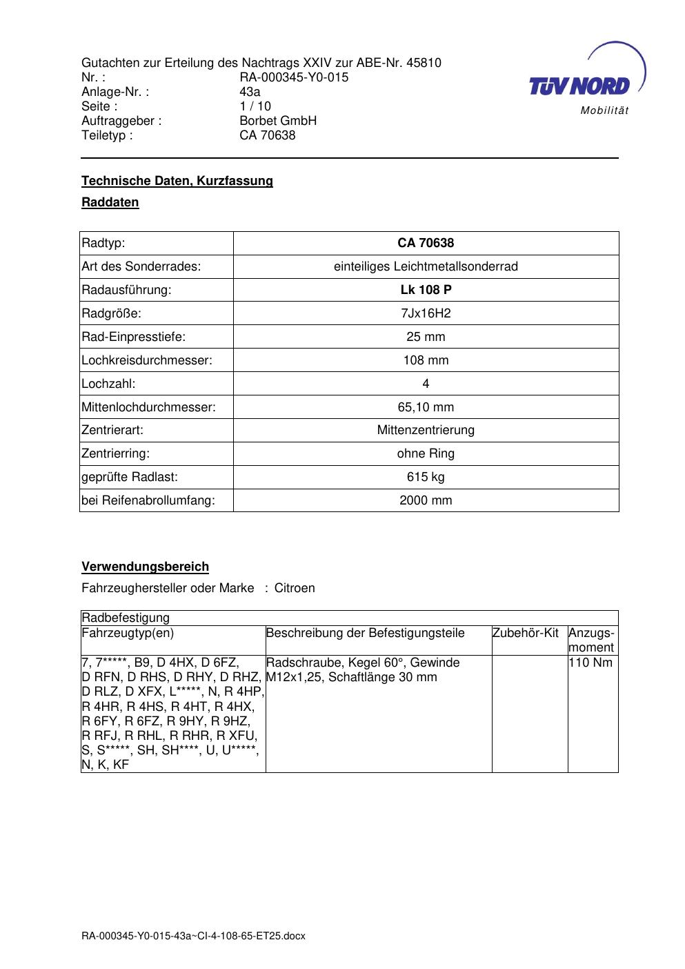 • Stimmt die KBA-Nummer auf der Felge mit diesem Dokument überein?