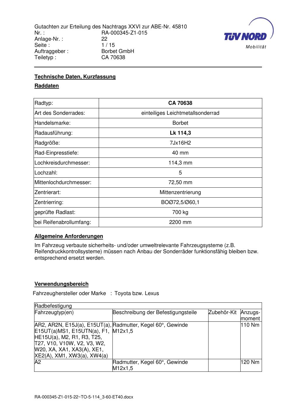 • Stimmt die KBA-Nummer auf der Felge mit diesem Dokument überein?