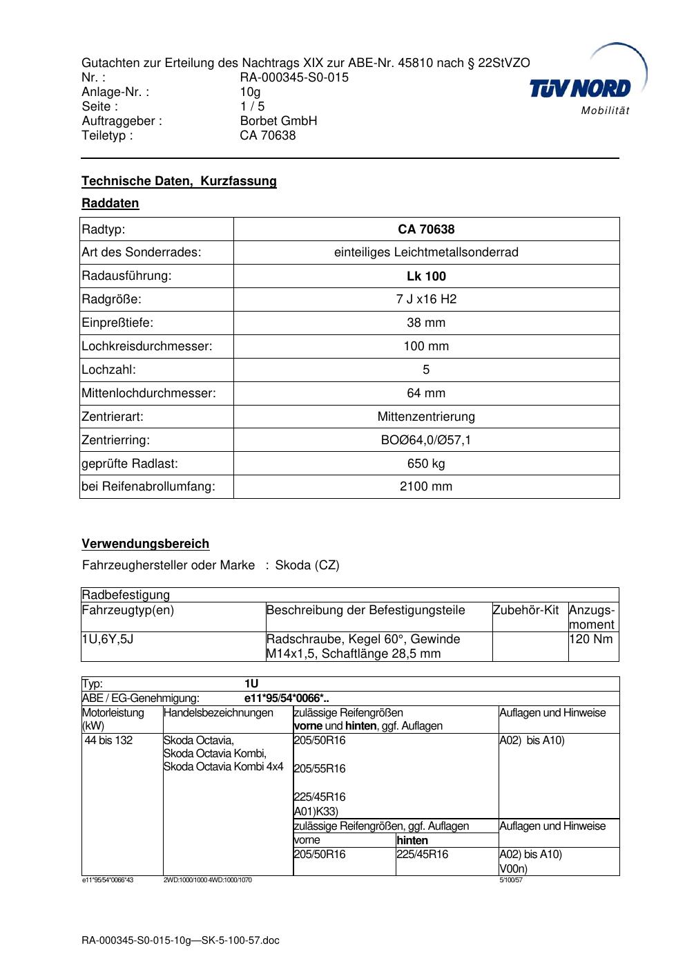 • Stimmt die KBA-Nummer auf der Felge mit diesem Dokument überein?