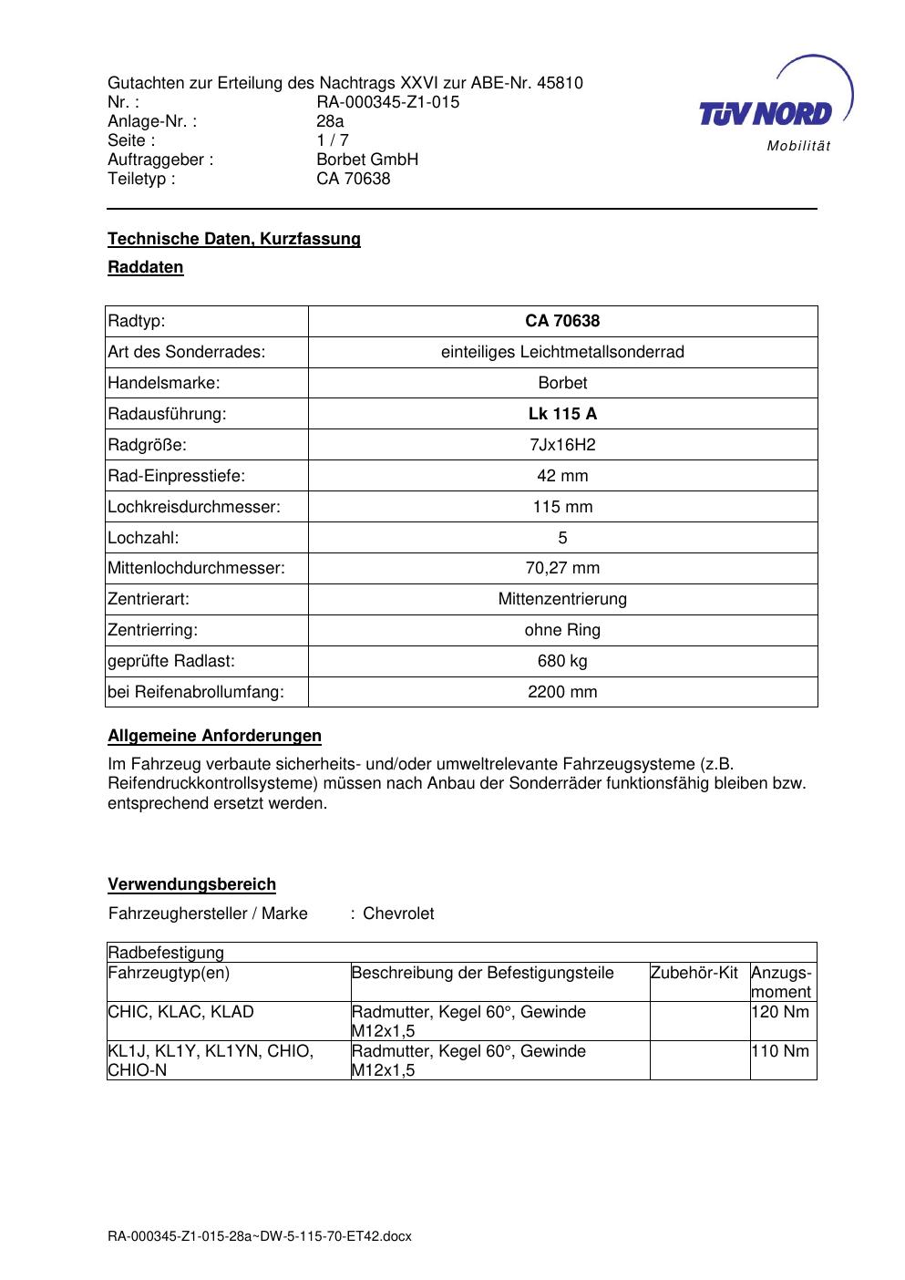 - Stimmt die KBA-Nummer auf der Felge mit diesem Dokument überein?