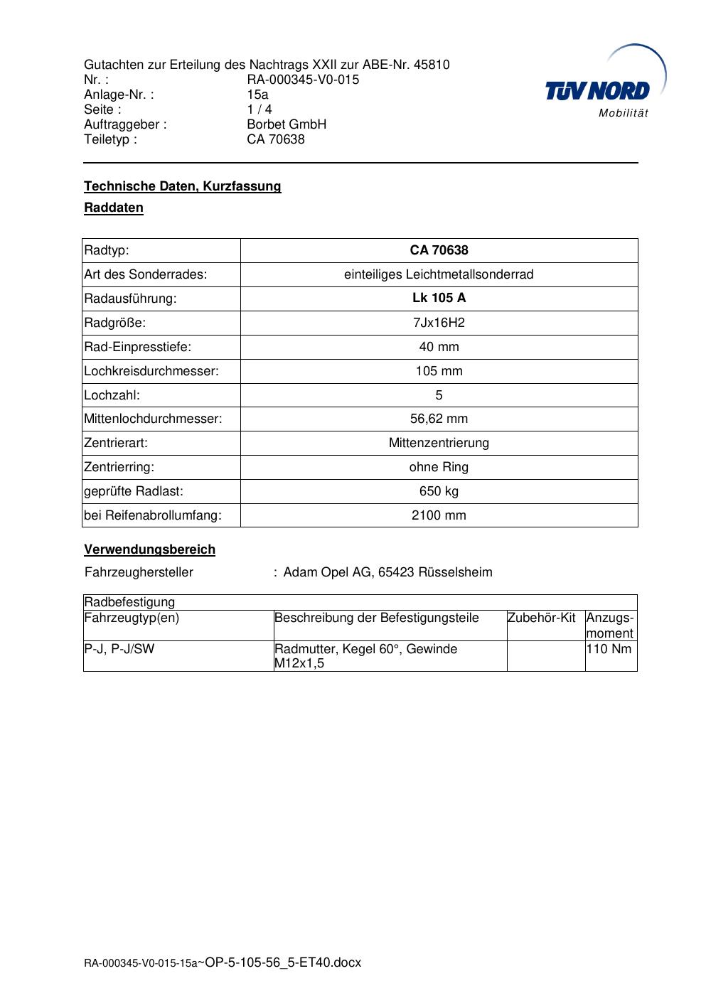 • Stimmt die KBA-Nummer auf der Felge mit diesem Dokument überein?